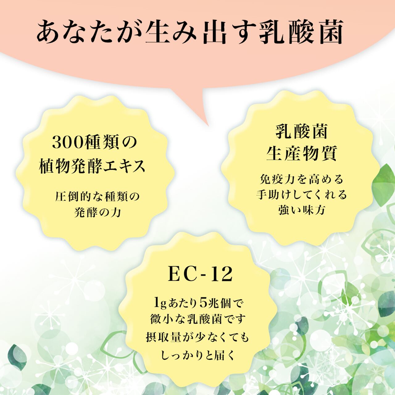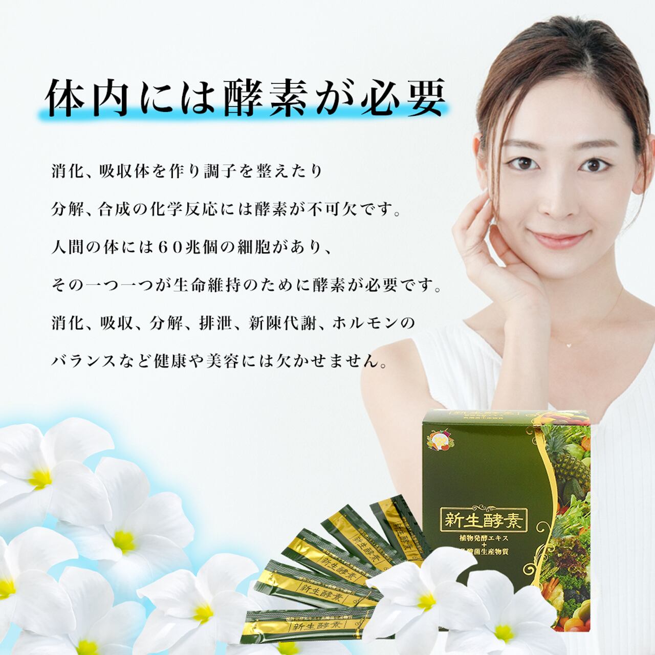 栄養を吸収するための腸内をキレイに保つことは、体全体を快調に導くことに直結しています。そのためには発酵食品に多く含まれることで知られる乳酸菌を増やしてあげることが必要不可欠。「新生酵素」は有効成分がお腹からダイレクトに届き、体内にもともと持つ善玉菌の働きを高めます。使用するひとつひとつの原料や製法にこだわり、それぞれの素材が持つ栄養素や特長を引き出しています。
